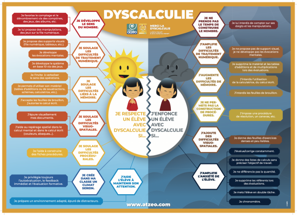 - En groupe, notez au moins 5 actions à mettre en place pour accompagner un enfant qui est atteint d’une « dys » : dyslexie, dyspraxie, dysphasie ou dyscalculie.