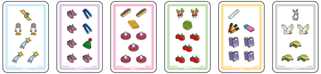 6 jeux de cartes (6 x 55 cartes) pour créer des réflexes avec des quantités et pour travailler le langage.