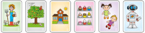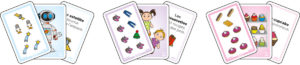 - Si la carte visible présente 2 nounours, 3 poupées et 1 ballon, je peux déposer soit une carte avec 3 nounours, soit une carte avec 4 poupées, soit une carte avec 2 ballons. Si je n’ai pas de carte utile, j’en prends une dans la pioche : soit je la pose car elle convient, soit je passe mon tour.