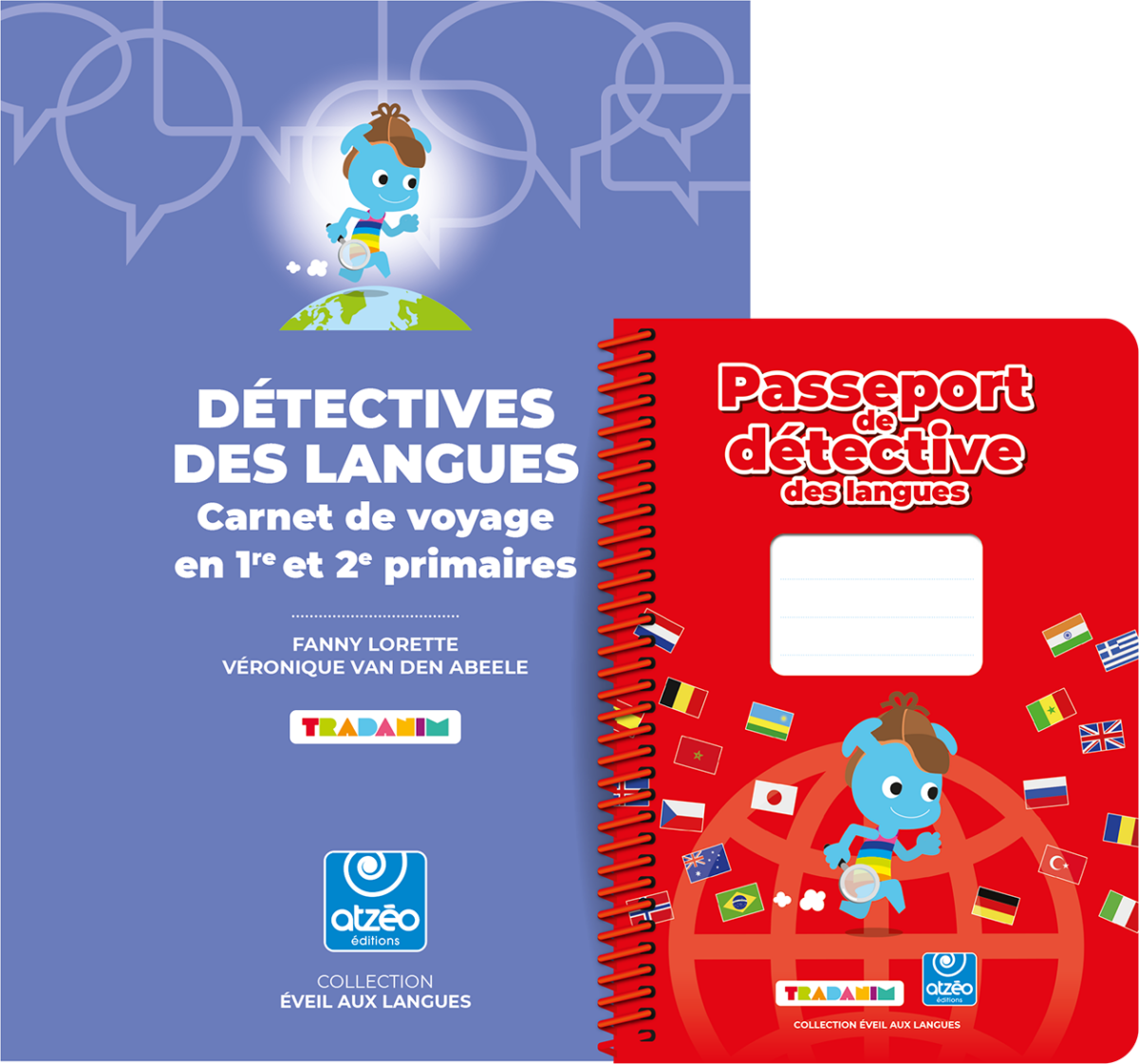 Le carnet de voyage en primaires « DÉTECTIVES DES LANGUES » contient les indications méthodologiques, les activités pour les élèves ainsi que les liens sur www.atzeo.com pour le matériel photocopiable. Il est accompagné par un passeport individuel pour que les enfants puissent partager à la maison autour des langues rencontrées. Vous y trouvez tous les QR codes pour les vingt langues des vingt pays.