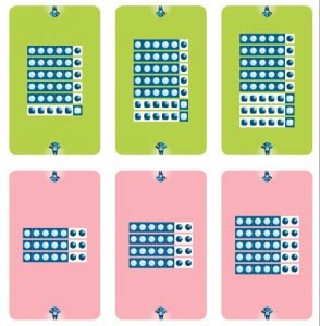 A deux, chacun reçoit quelques cartes. On retourne en même temps une carte et le premier qui exprime un lien, quand c’est possible, gagne. Par exemple : c’est la même table / ils ont le même diviseur / une carte est le double de l’autre/- …. Au début, il faut imaginer des liens possibles et décider de ceux que l’on va utiliser…
