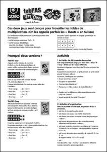 Ce jeu est conçu pour travailler les tables de multiplication. (On les appelle parfois les « livrets » en Suisse) Ces familles de multiplications sont souvent approchées dans deux langages :